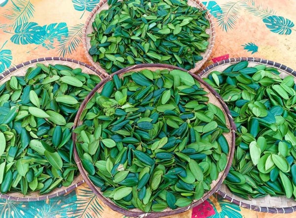 Après cuiellette et nettoyage des feuilles, les feuilles de ravintsara sont déshydratés dans un séchoir puis réduit en poudre.